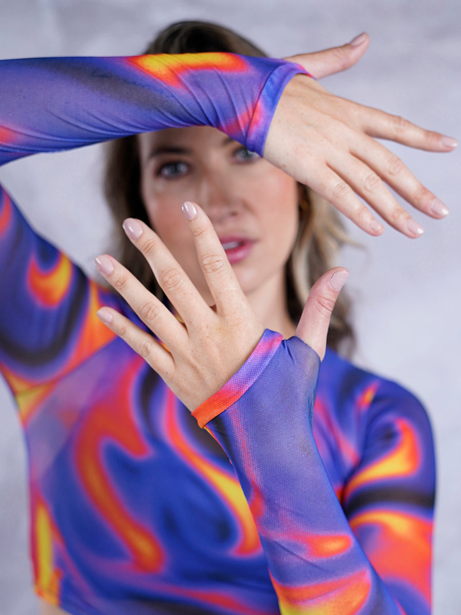 Te encantará nuestro camibuso sublimado de silueta ajustada con mangas tipo guante. Elaborado en mesh, este camibuso es suave y ligero, permitiendo una ventilación adecuada para mantenerte siempre fresca durante tus entrenamientos más intensos. Es el complemento perfecto para enfrentar sesiones de entrenamiento duro sin perder la delicadeza que nos caracteriza.