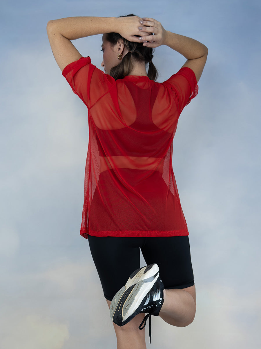 Experimenta la comodidad en cada movimiento con nuestra camiseta oversize, confeccionada en una tela transpirable de malla que te brinda la libertad de usarla en tu día a día