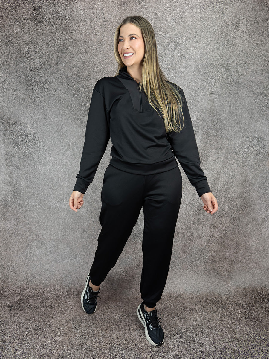 Este conjunto de BJX FITWEAR es el equilibrio perfecto entre confort y estilo. Su jogger de ajuste relajado con bolsillos te permite llevar lo esencial, mientras que el buso con cierre frontal y cuello ligeramente alto añade un toque de elegancia sin esfuerzo. Ideal para un look de aeropuerto impecable o un domingo de descanso con mucho estilo. Perfecto para quienes buscan ropa deportiva versátil que se adapte a cualquier ocasión. Disponible en marfil y negro.