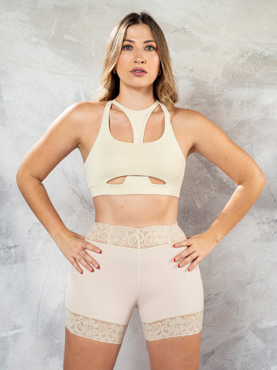 Cuenta con terminación en encaje siliconado lo que permite que no se enrolle ni se mueva de su lugar. Efecto levanta cola por costuras que realzan los glúteos. Capa interna de tela para mayor suavidad al tacto. Control de abdomen y caderas.