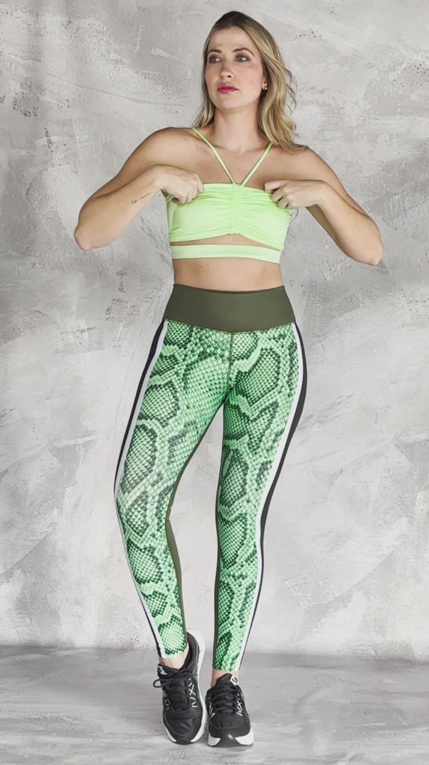 Leggins en tela sublimada con pretina alta que define tu figura y resalta tus curvas. Elaborado en tela efecto cuero que es suave al tacto para que te sientas cómoda y fresca en tus entrenamientos. Con detalles sublimados al frente para resaltar tus curvas.
